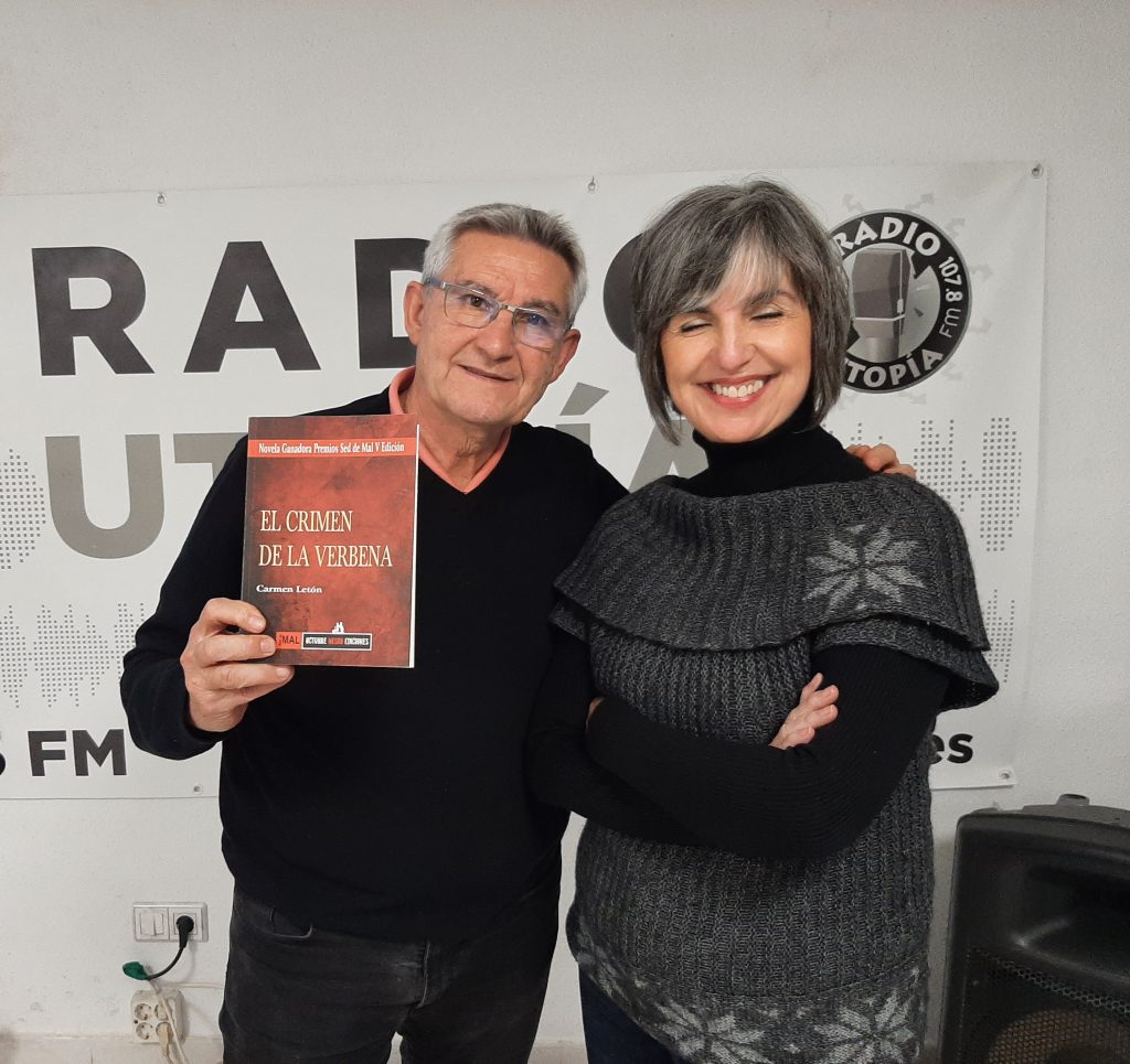 Recibimos a CARMEN LETÓN por segunda vez en el programa, ante el éxito obtenido por su publicación «EL CRIMEN DE LA VERBENA» que va ya por su segunda edición, nos avanza el nuevo caso de la «Seña Rita» que tiene en marcha y nos invita a la próxima Feria del Libro de Madrid, donde estará